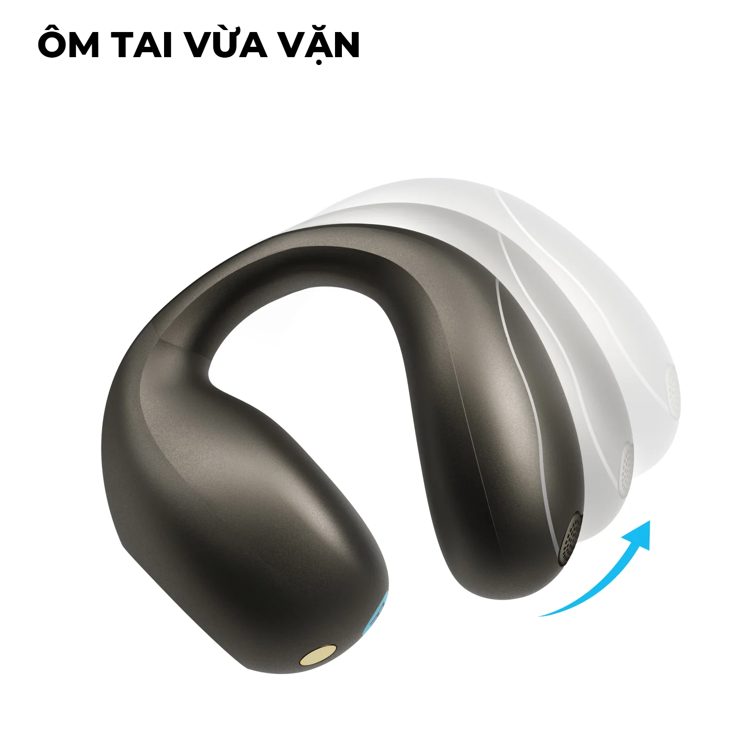 Tai nghe soundcore C40i mang thiết kế mở tai kiểu gài, đảm bảo độ thoáng khí tối đa và cảm giác đeo nhẹ như không. Kẹp chắc nhưng mềm mại, không gây áp lực lên ống tai, phù hợp cho vận động, di chuyển và sử dụng cả ngày dài.
