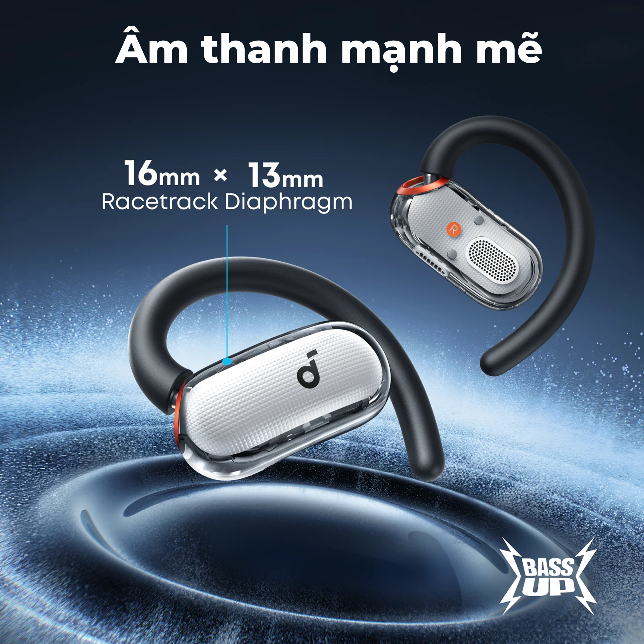 Thiết kế open-ear (mở tai) loại bỏ hoàn toàn cảm giác bí bách trong ống tai, giúp đôi tai luôn thông thoáng và dễ chịu, đồng thời vẫn nghe rõ âm thanh xung quanh – lý tưởng khi di chuyển hoặc luyện tập.