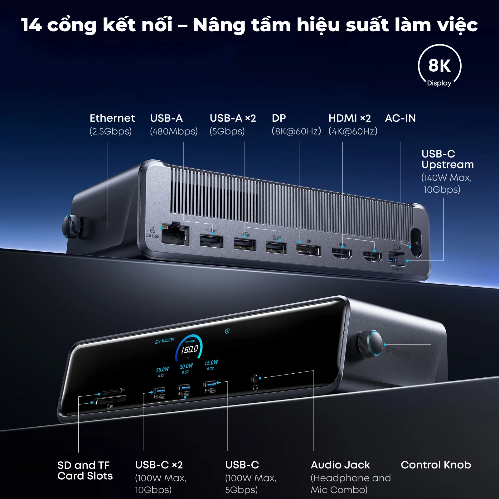 Trạm Sạc Anker Prime 14-in-1 – 3 Màn Hình, Sạc Laptop 140W