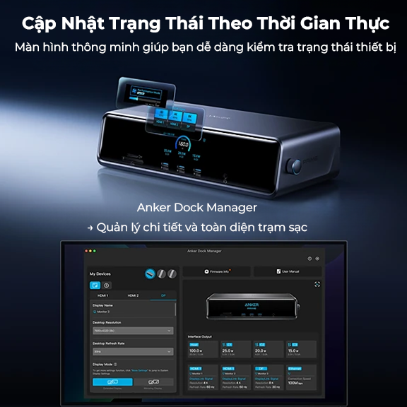 - - Anker Dock Manager quản lý độ phân giải, tần số quét, firmware
